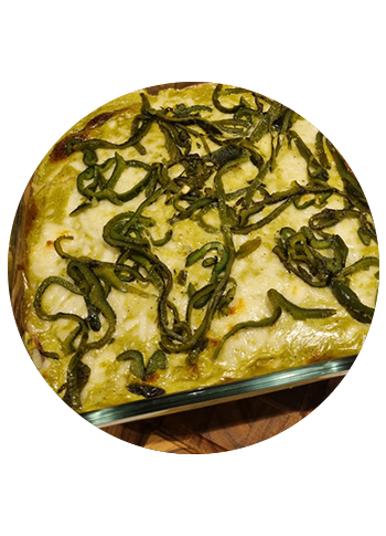Paso 7: Una vez fuera del horno, decora con unas tiras adicionales de chile poblano asado por encima y sirve caliente.
