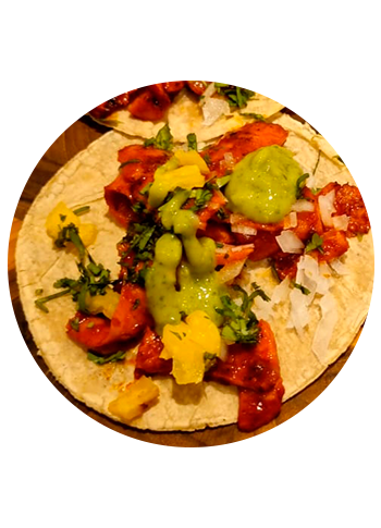 Paso 10: Calienta las tortillas y coloca las salchichas al pastor. Completa tus tacos con salsa de aguacate, cebolla, cilantro y piña.